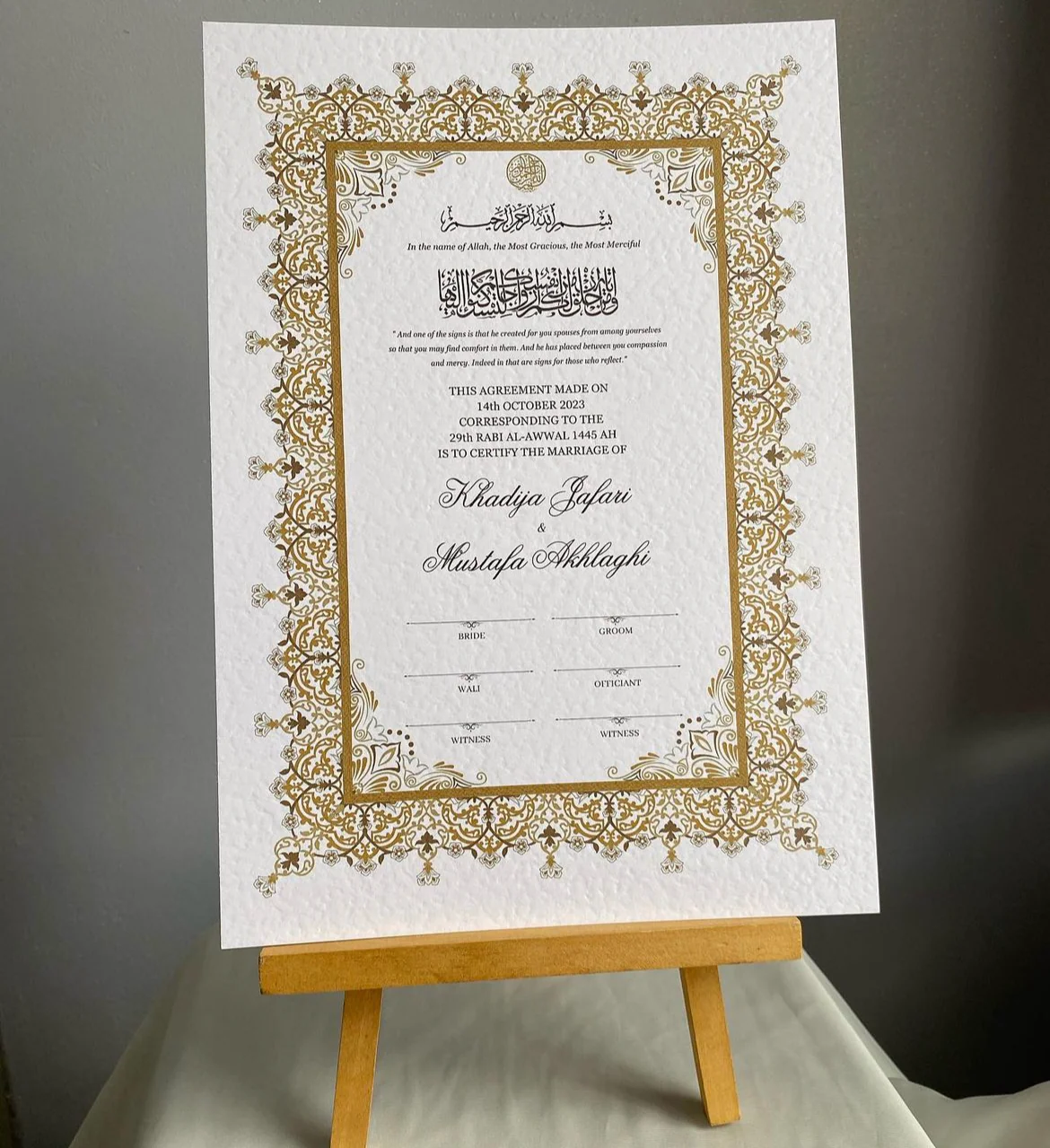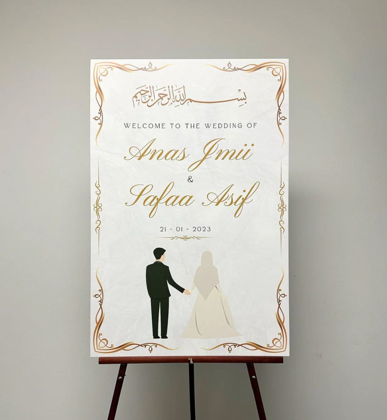 We create elegant Islamic Nikkah certificates and welcome signage, designed to honour faith, culture, and simplicity.